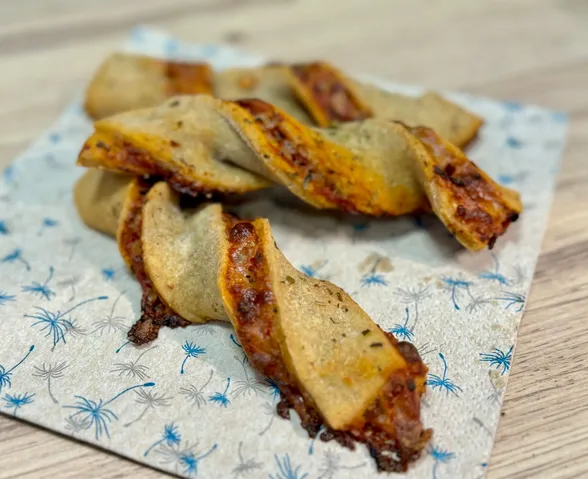 Alternatywa dla pizzerinki - paluch z sosem pomidorowym i serem - przekąska na mały głód.
